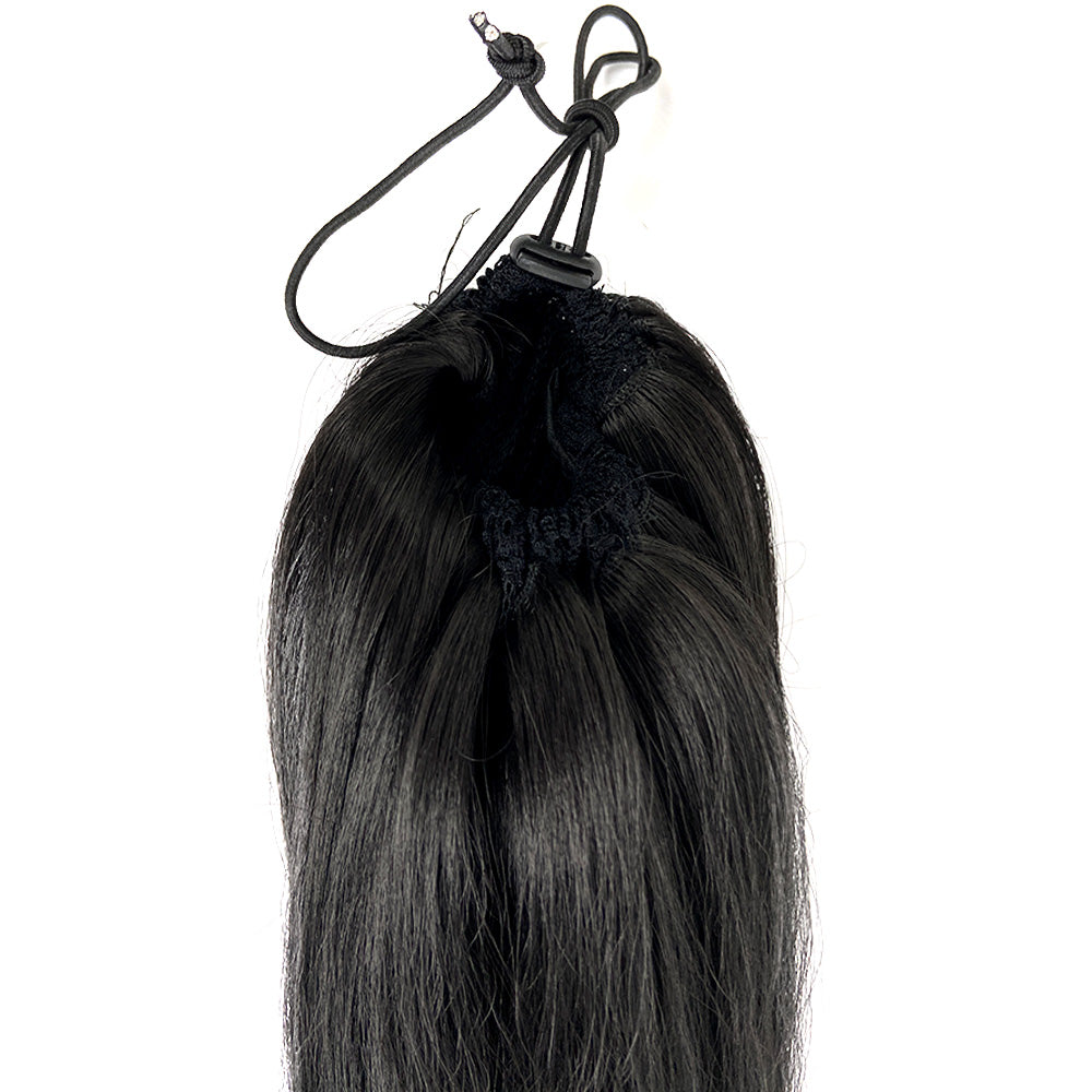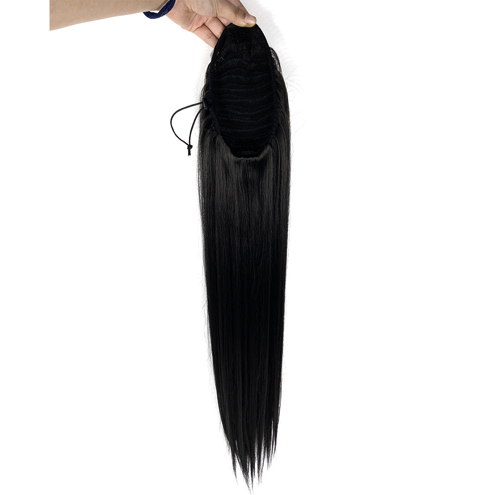 - ADVANTAGE: Natural, Soft & Natural, and full and long-lasting long drawstring clip in straight YAKI ponytail for black women. Blends well with your own hair. It can be used on Halloween, Cosplay, Costumes, theme parties, and other occasions