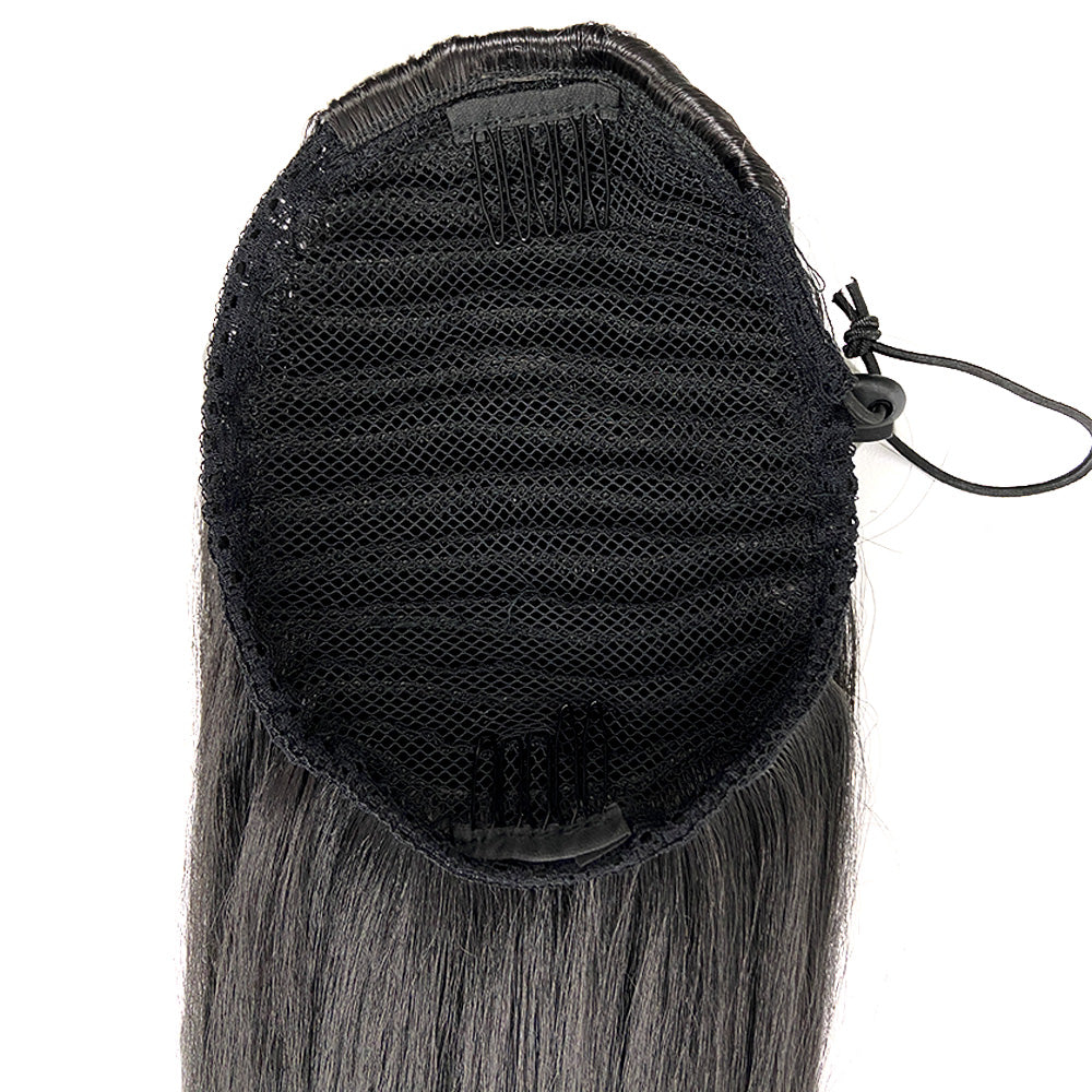 - STYLE: It’s a little YAKI Straight long drawstring ponytail that has a nice texture, and the breathable hair net comes with 2 combs to fix the long ponytail hairpiece, and with an Elastic Rubber Band updo extension hairpiece. Fix it in your hair with two combs and tie the elastic rubber bands tightly, add length to your natural hair, naturally blends into your own hair