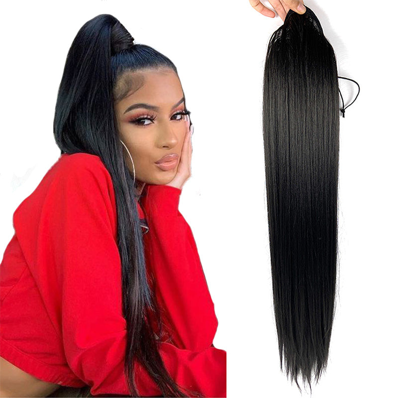 30inch Long Ponytail Extension Straight Yaki Drawstring High Ponytail